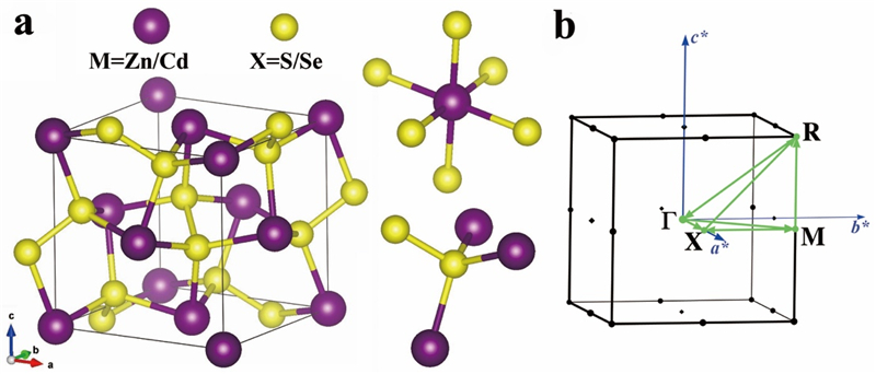 图1. Pyrite型化合物的晶体结构(a)和相应的布里渊区(b)。