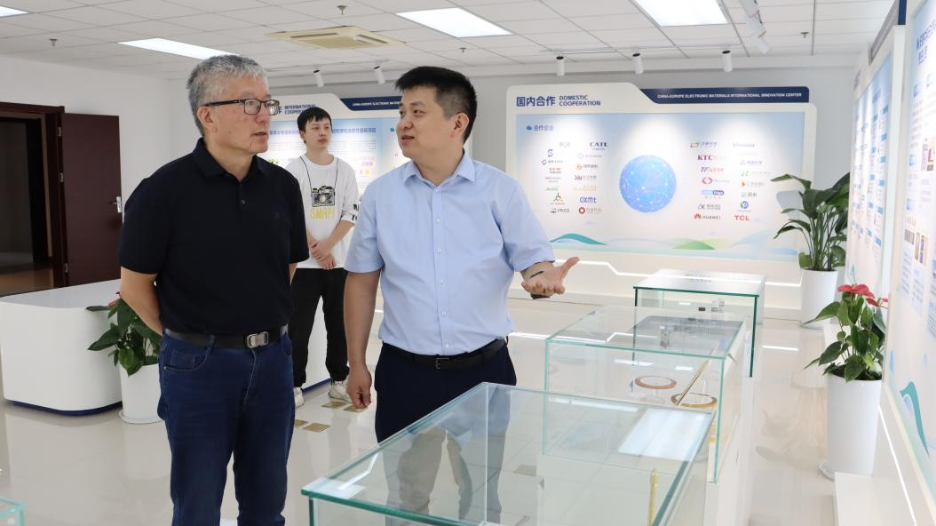 孟立建教授实地考察参观了创新中心科技成果展厅,详细听取了创新中心近年来在关键核心材料攻关、科技成果转化以及国际交流合作拓展方面取得的重大突破进展。双方表示,期待能进一步加强沟通交流,深化务实合作机制,共同为中欧电子材料科技的合作与发展持续赋能。
