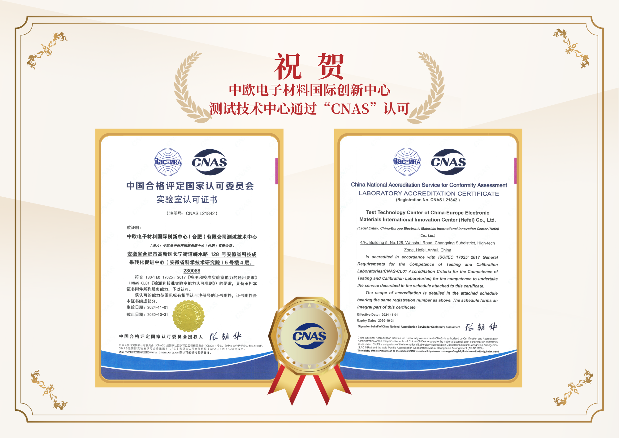 测试技术中心所取得的CNAS认证范围涵盖了多种电子材料的关键检测领域,包括塑料、橡胶、微球、导电胶等。CNAS证书的获得标志着测试技术中心拥有符合国际标准的质量管理体系、软硬件设备设施、管理水平和检测技术能力,具备提供更合规、精准及具有国际权威性和公信力的检测服务。